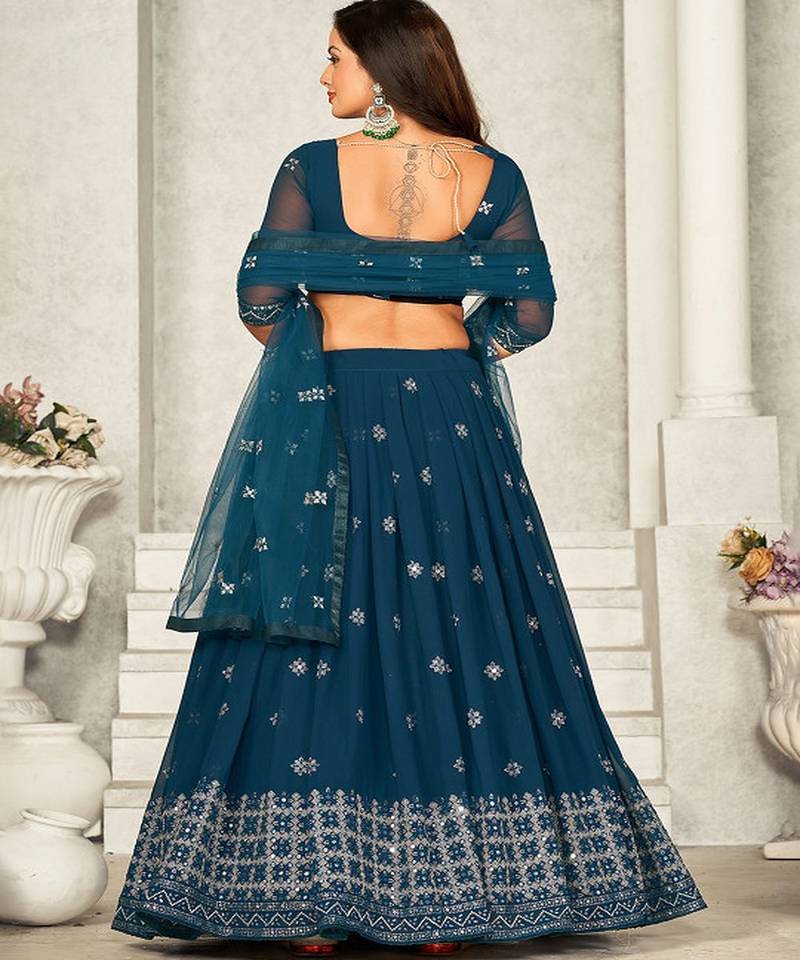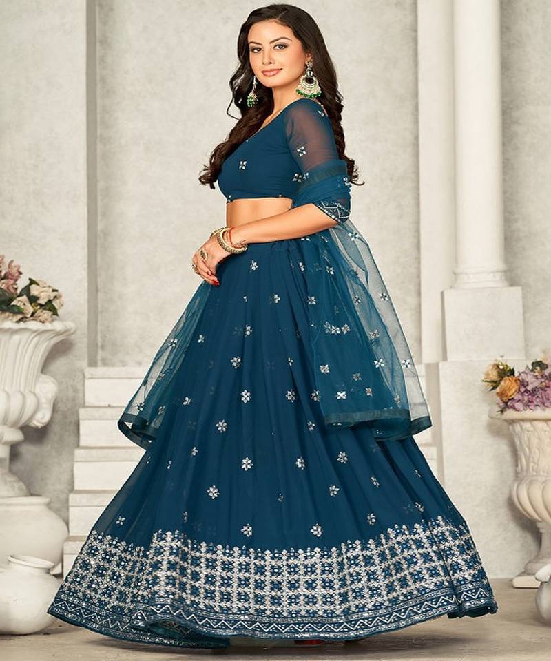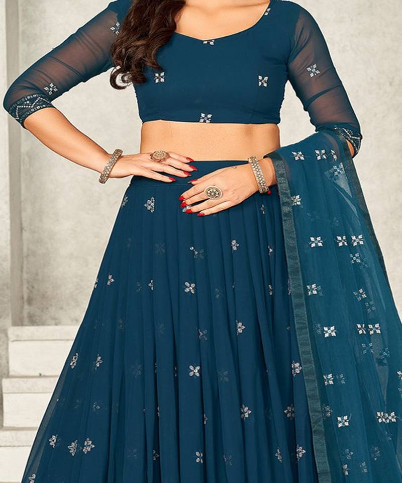 Embellished sequinned semi stitched lehenga & unstitched blouse with dupatta