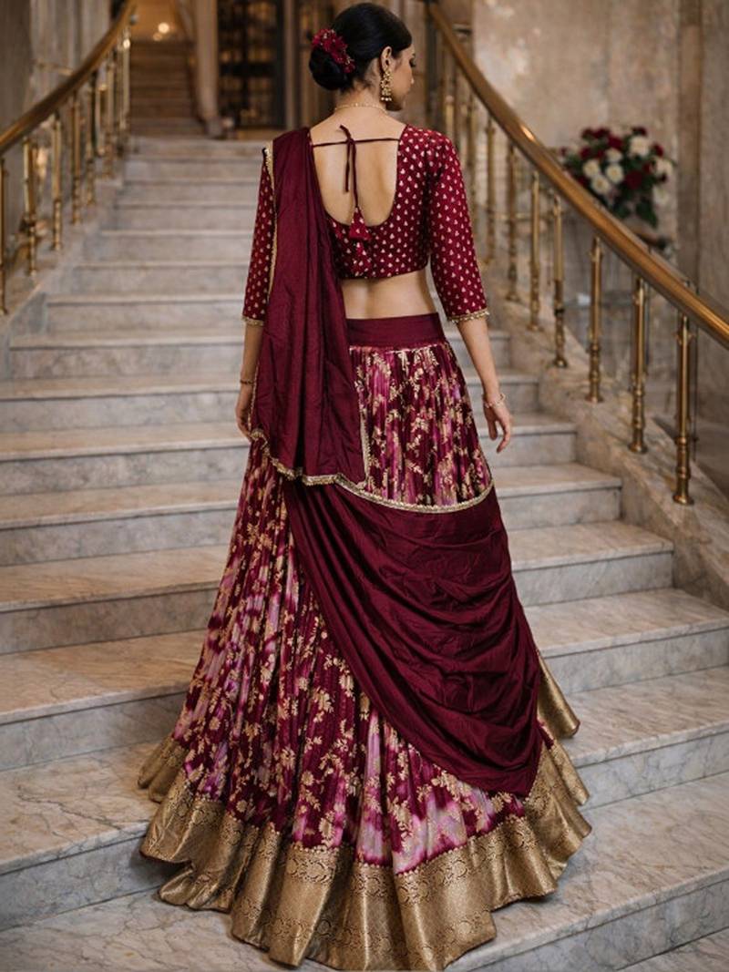 Embellished shibori ready to wear lehenga & blouse with dupatta free size upto 42