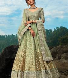 Embroidered net semi-stitched lehenga & unstitched blouse with dupatta free size upto 42