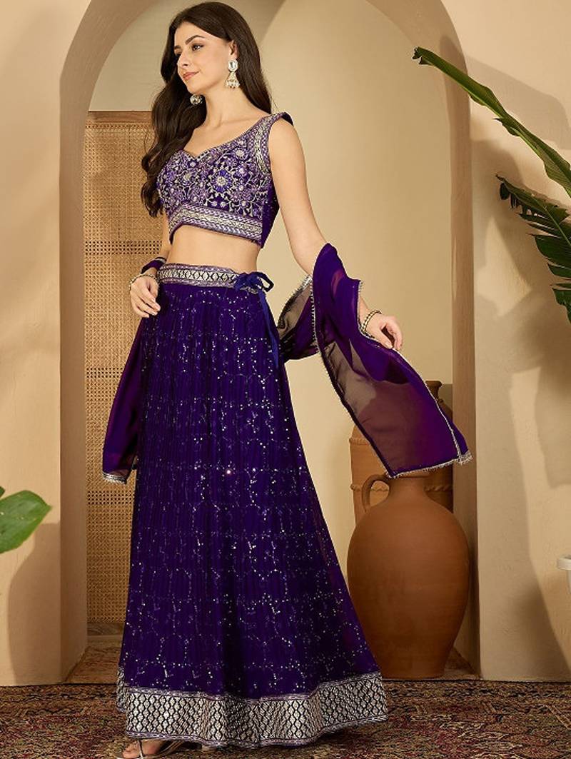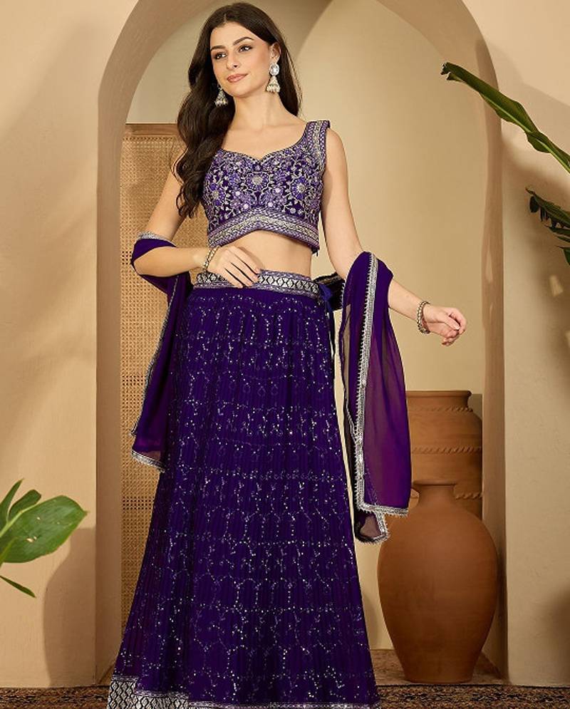 Embroidered ready to wear lehenga & blouse with dupatta free size upto 42