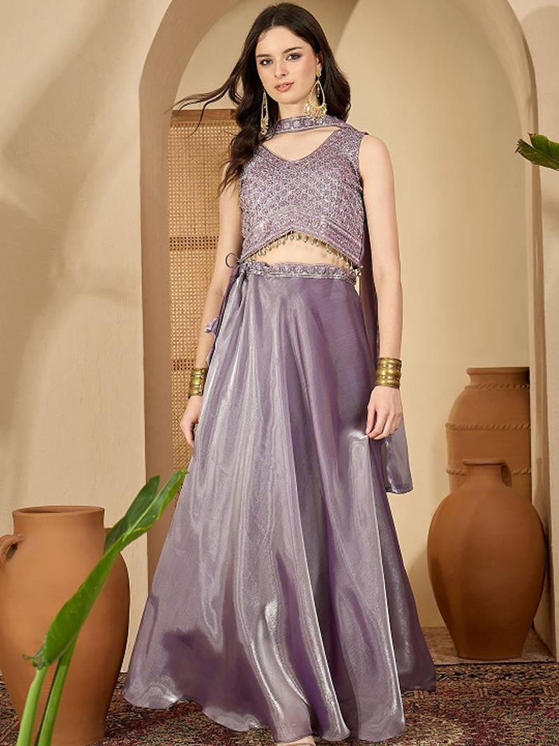 Embroidered ready to wear lehenga & blouse with dupatta free size upto 42