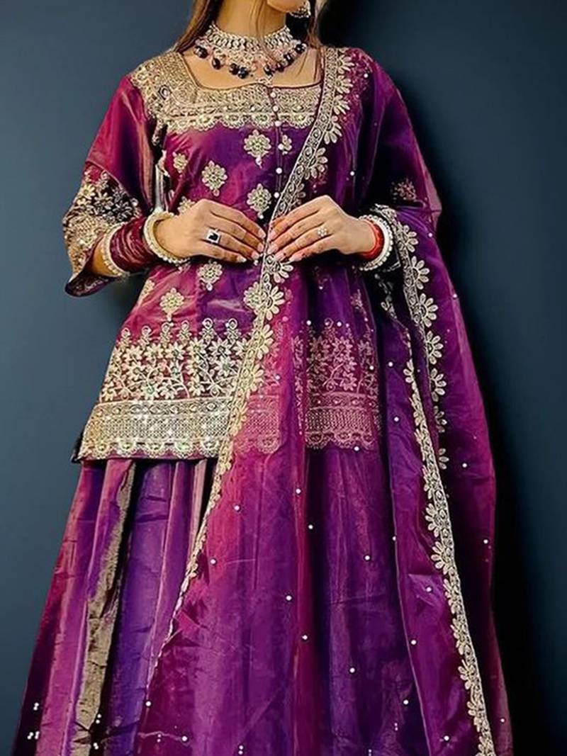 | • | Dupatta | : | Color- Purple / Fabric- Organza |