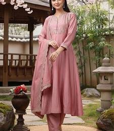 Embroidered round neck kurta & trousers with dupatta