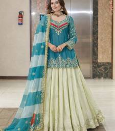 Embroidered semi-stitched lehenga & blouse with dupatta free size upto 42