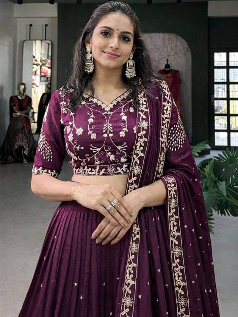 Embroidered semi-stitched lehenga & unstitched blouse with dupatta free size upto 42