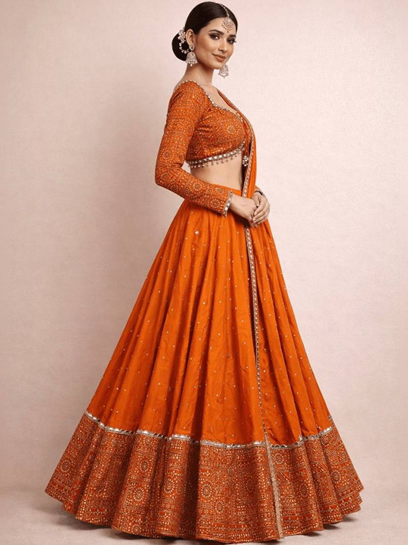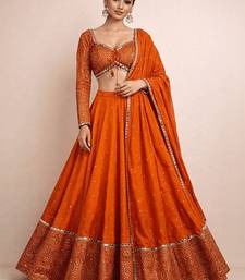 Embroidered semi-stitched lehenga & unstitched blouse with dupatta free size upto 42