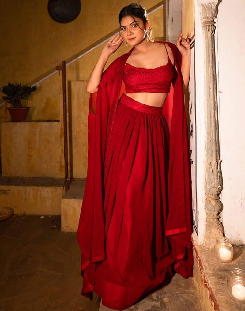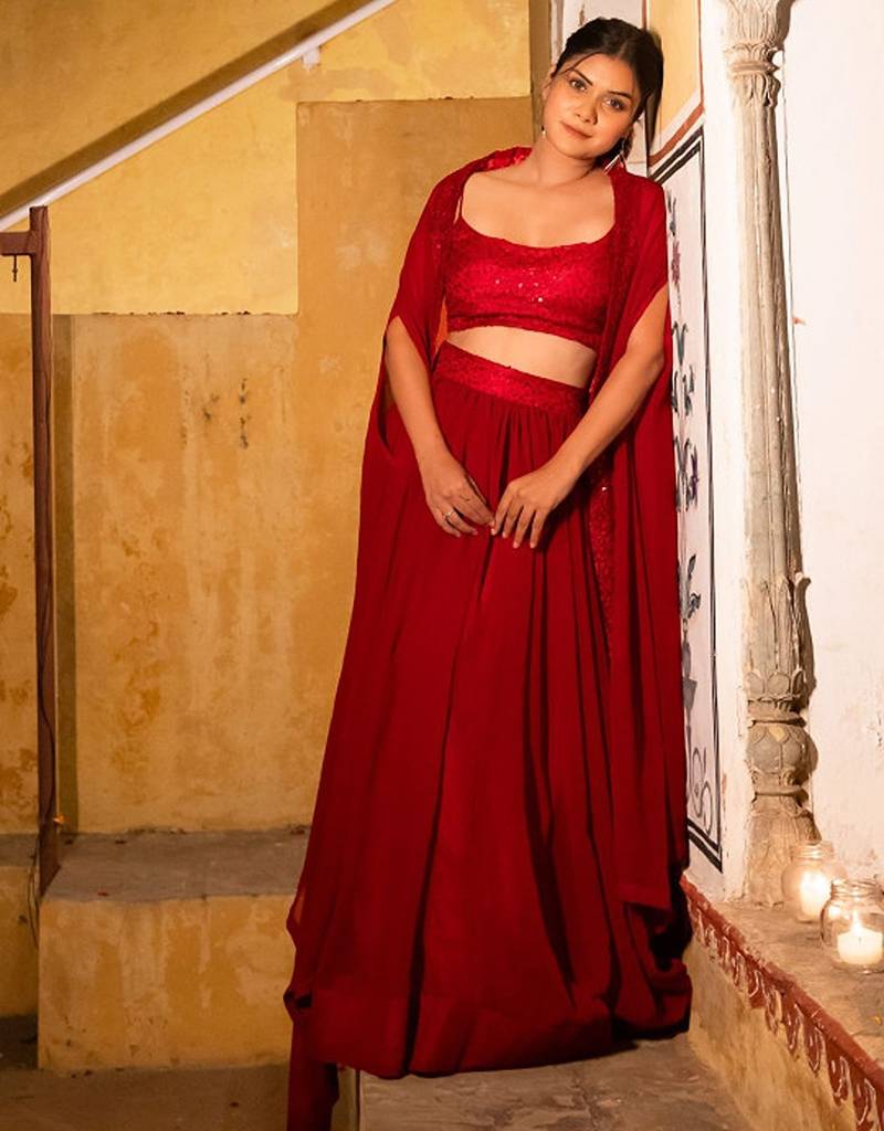 | Product Name | Embroidered Sequinned Ready To Wear Lehenga & Blouse With Cape Free Size Upto 42 | |