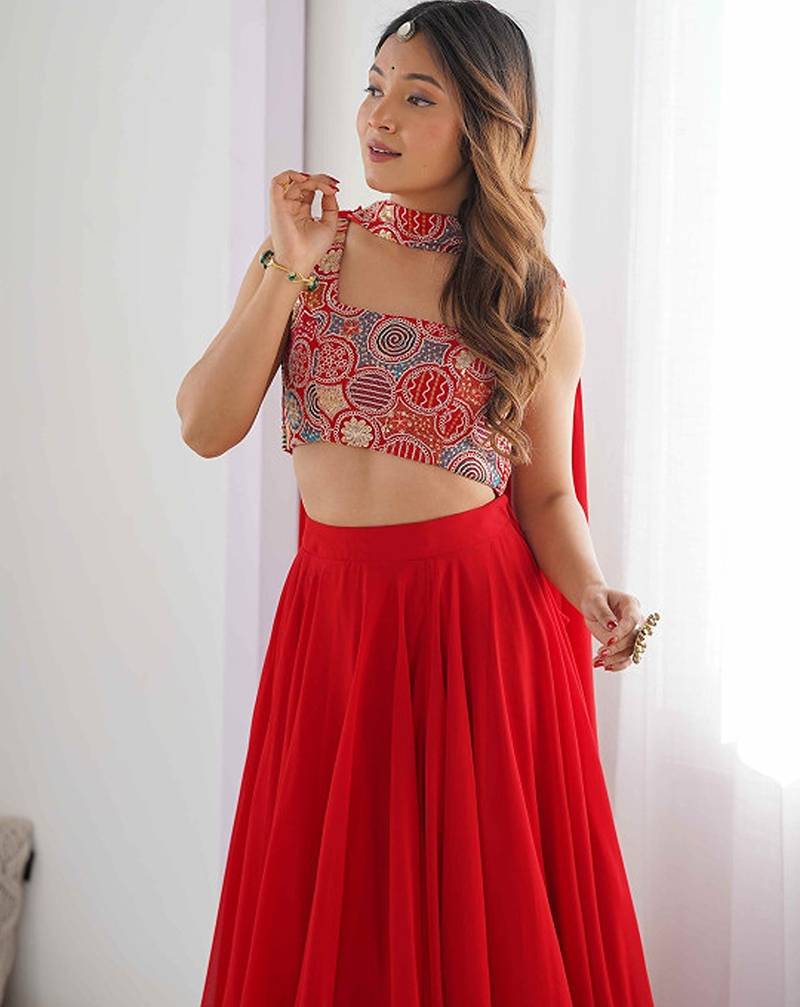 | • | Dupatta | : | Color- Red / Fabric- Georgette |