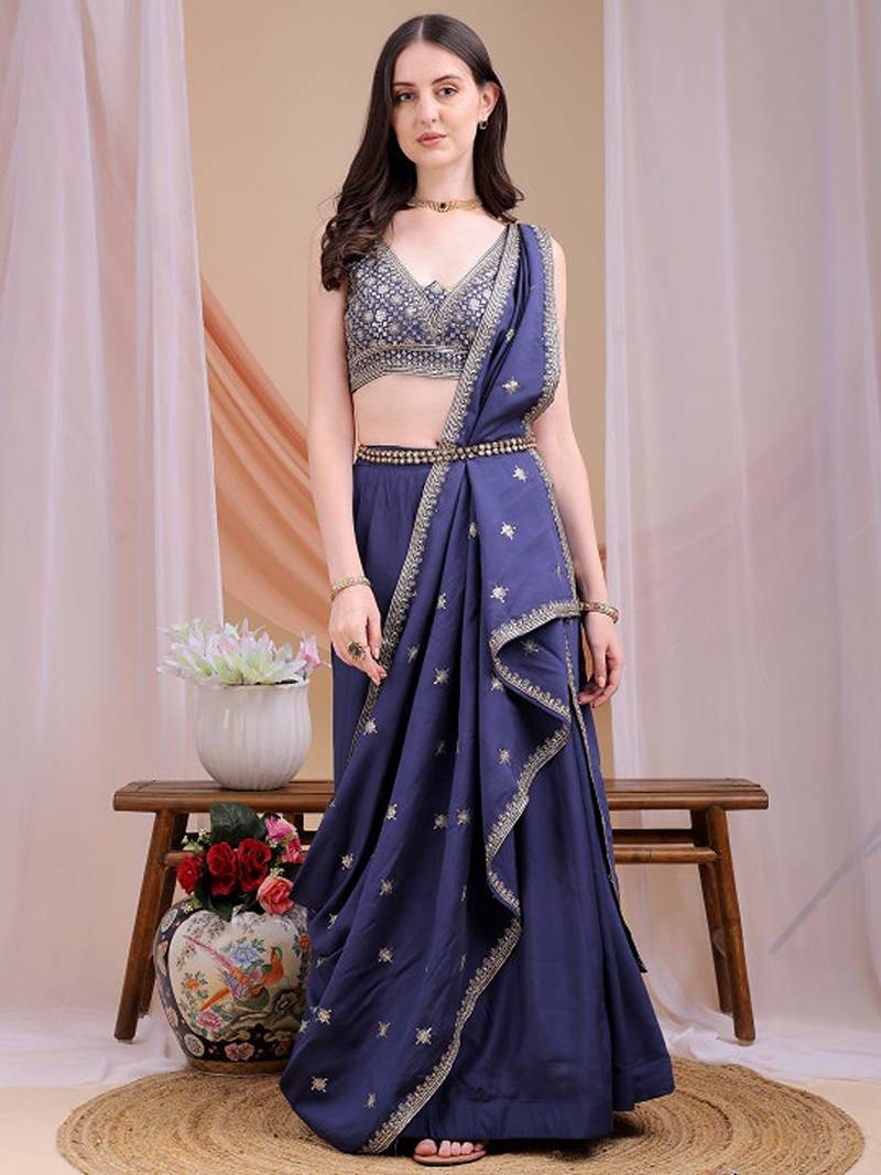 Embroidered sequinned ready to wear lehenga & blouse with dupatta free size upto 42