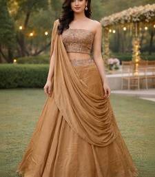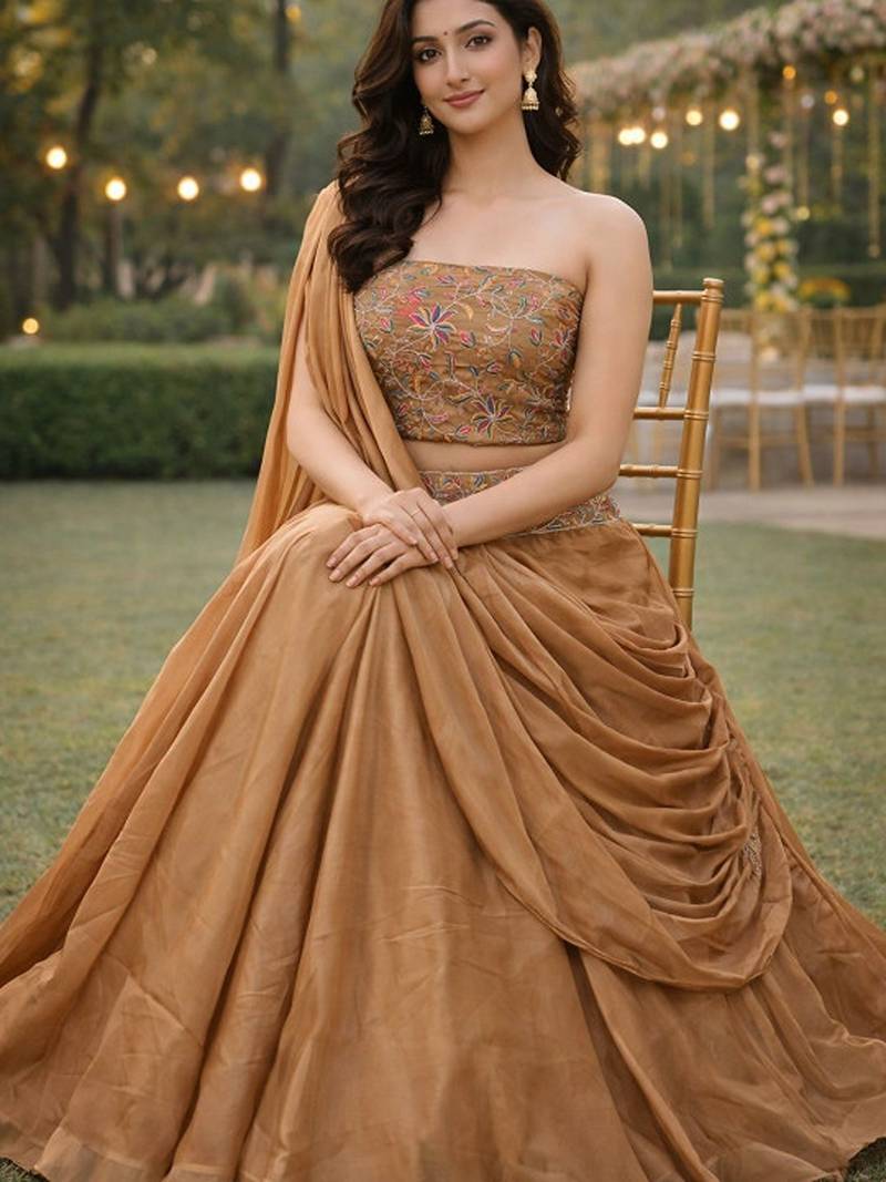 Embroidered sequinned ready to wear lehenga & unstitched blouse with dupatta free size upto 42