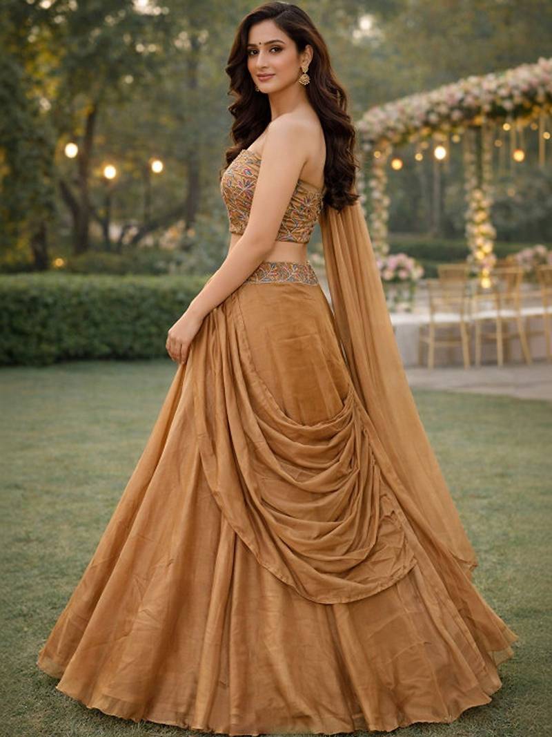 | Product Name | Embroidered Sequinned Ready To Wear Lehenga & Unstitched Blouse With Dupatta Free Size Upto 42 | |