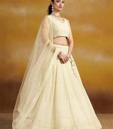 Embroidered sequinned semi-stitched georgette lehenga & blouse with dupatta free size upto 42