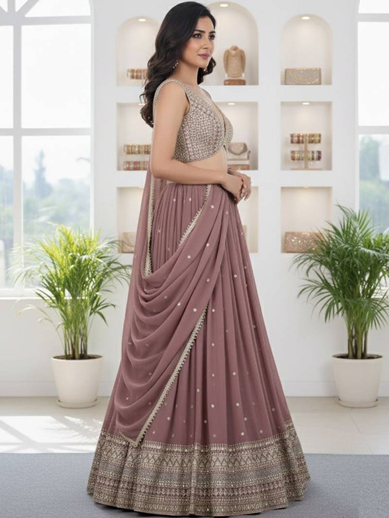 | Product Name | Embroidered Sequinned Semi Stitched Lehenga & Unstitched Blouse Silk Georgette Free Size Upto 42 | |