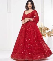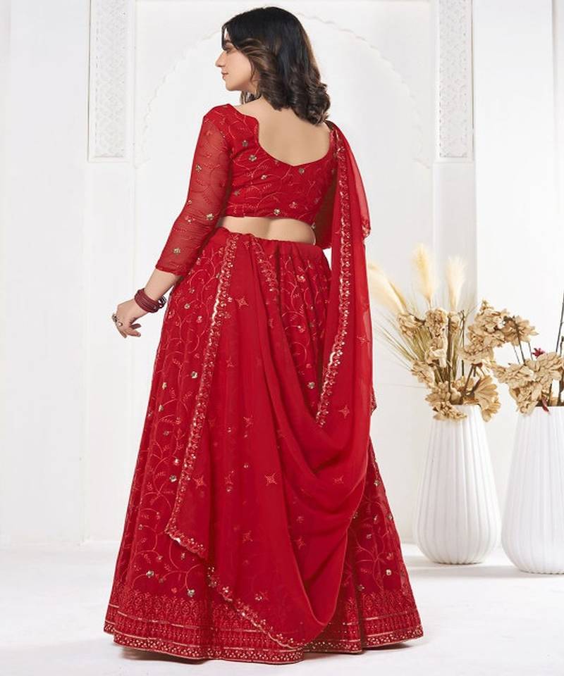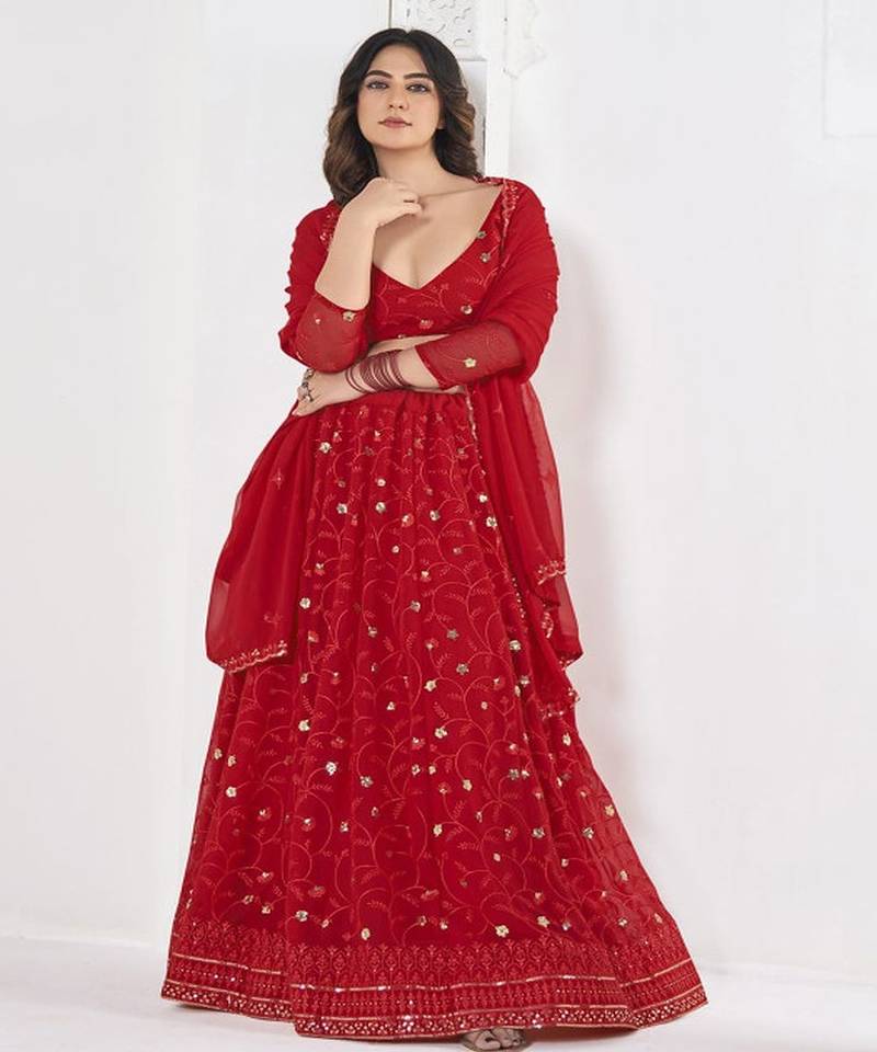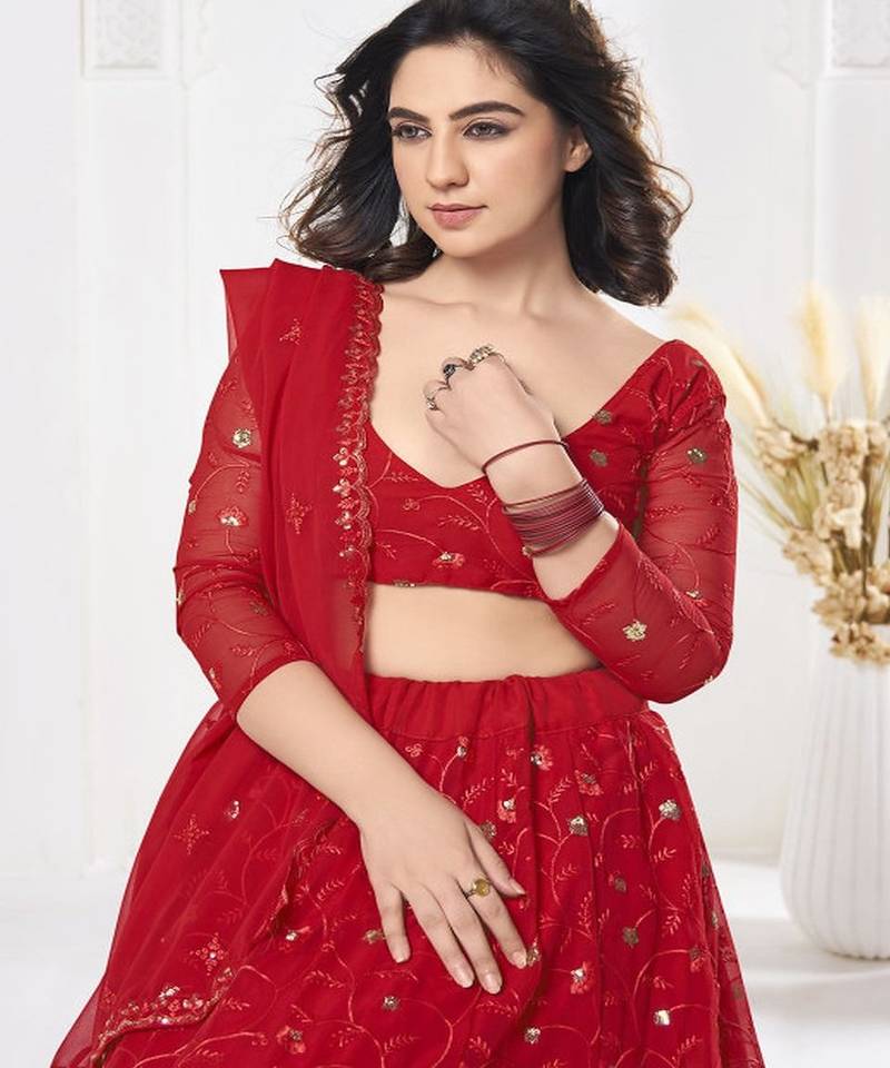 Embroidered sequinned semi stitched lehenga & unstitched blouse with dupatta
