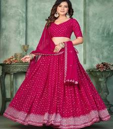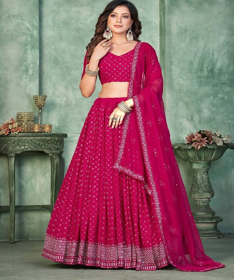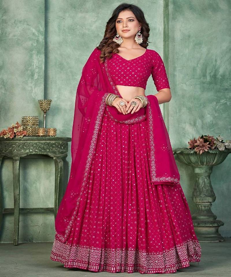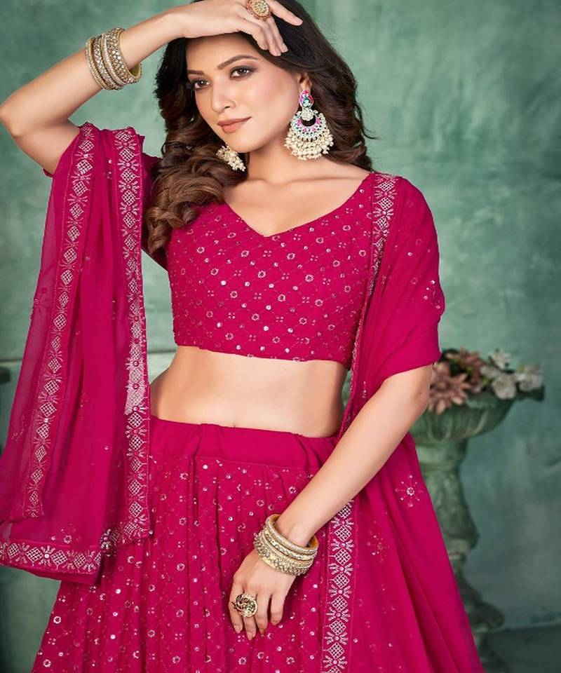 Embroidered sequinned semi stitched lehenga & unstitched blouse with dupatta