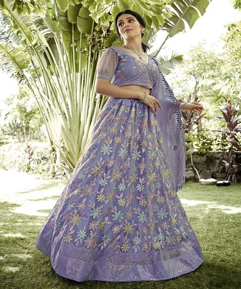 Embroidered sequinned semi stitched lehenga & unstitched blouse with dupatta