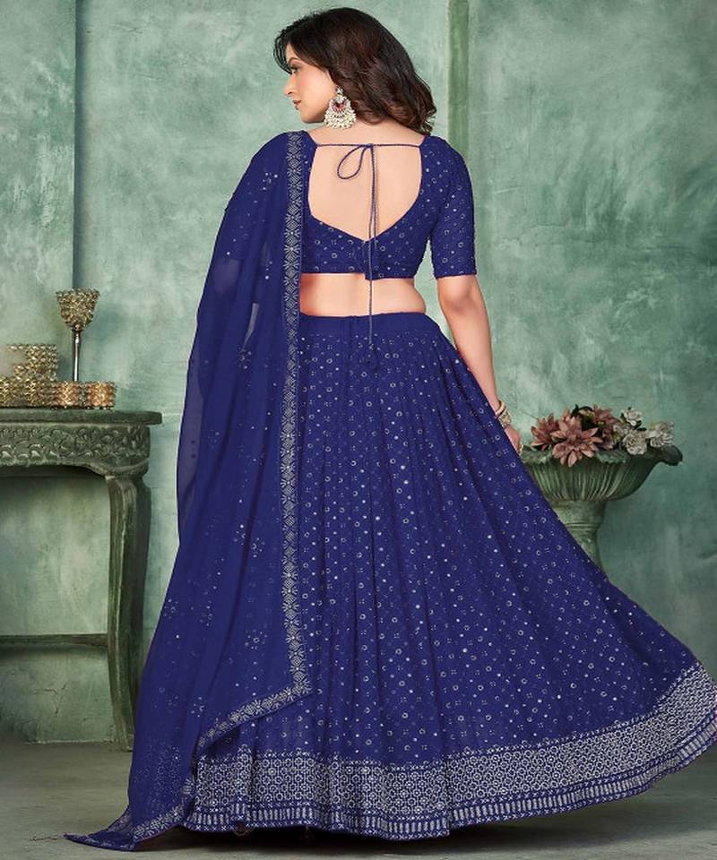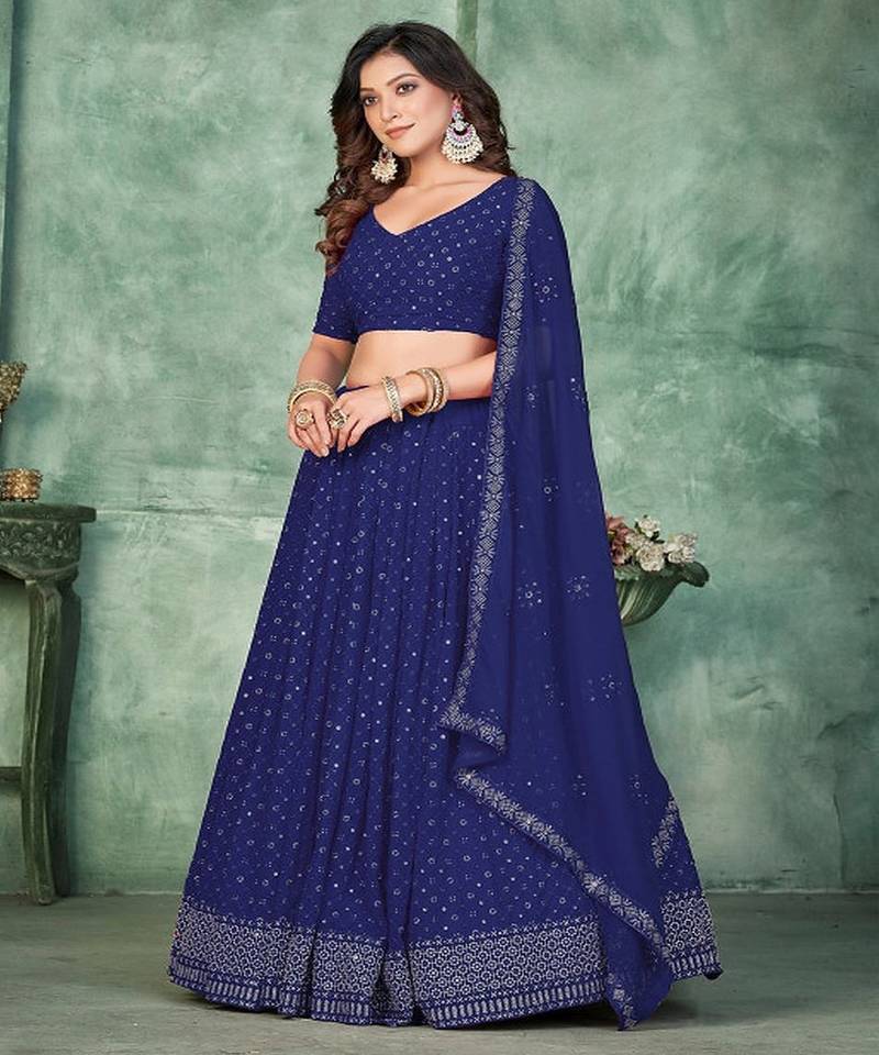 Embroidered sequinned semi stitched lehenga & unstitched blouse with dupatta