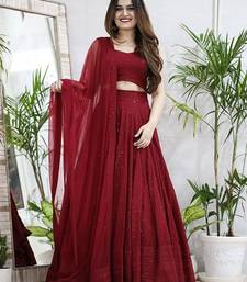 Embroidered sequinned semi-stitched lehenga & unstitched choli with dupatta free size upto 42