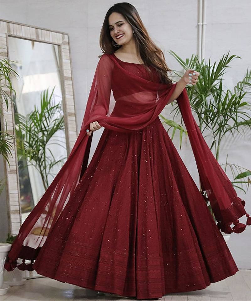| • | Dupatta | : | Color- Maroon / Fabric- Net |
