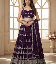 Embroidered silk georgette semi-stitched lehenga & unstitched blouse with dupatta free size upto 42