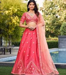 Embroidered thread work ready to wear lehenga & blouse with dupatta free size upto 42