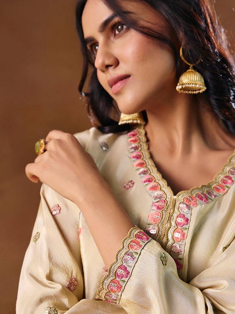 | • | Dupatta | : | Color- Cream / Fabric- Na |