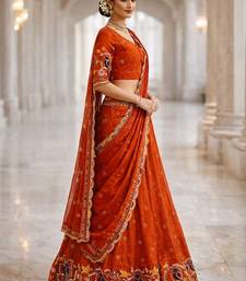 Embroidered thread work semi-stitched lehenga & blouse with dupatta free size upto 42