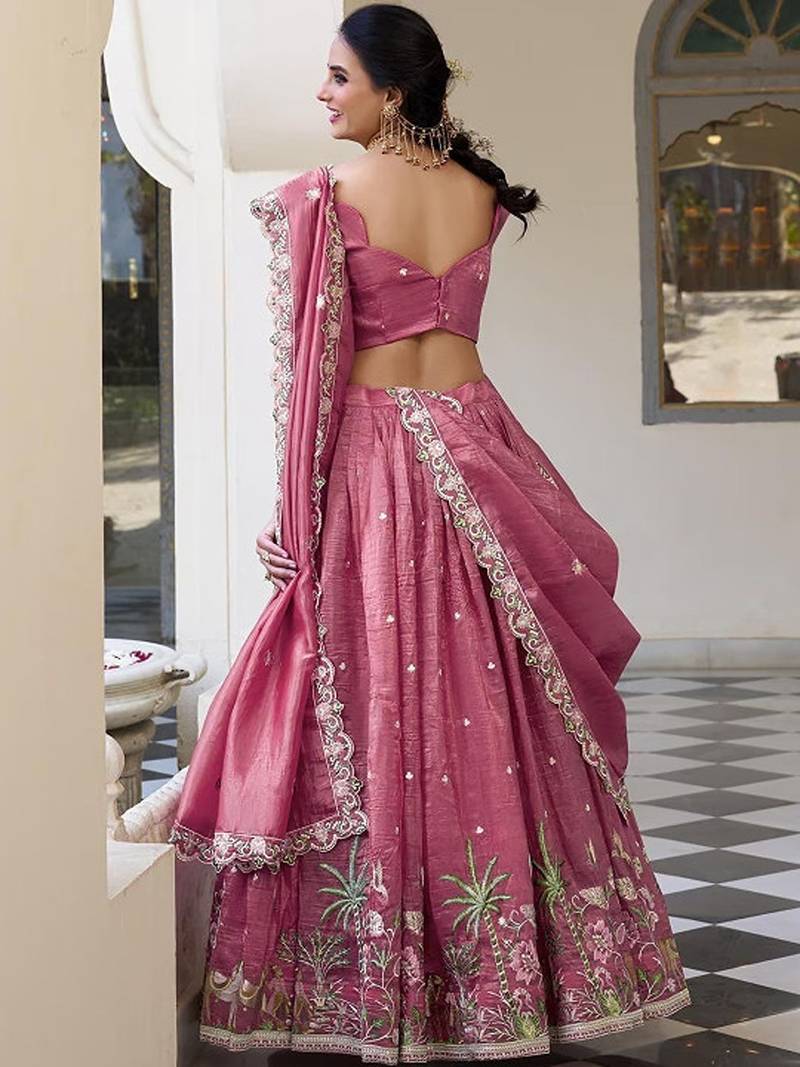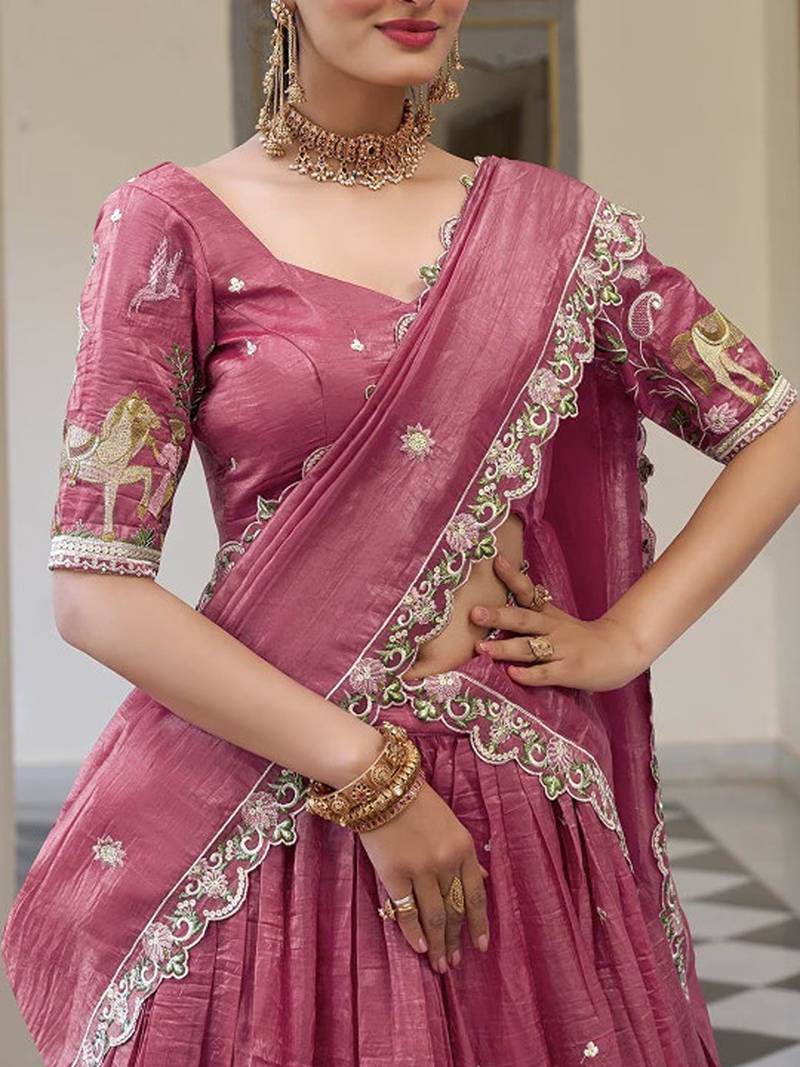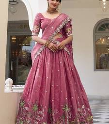 Embroidered thread work semi-stitched lehenga & blouse with dupatta free size upto 42