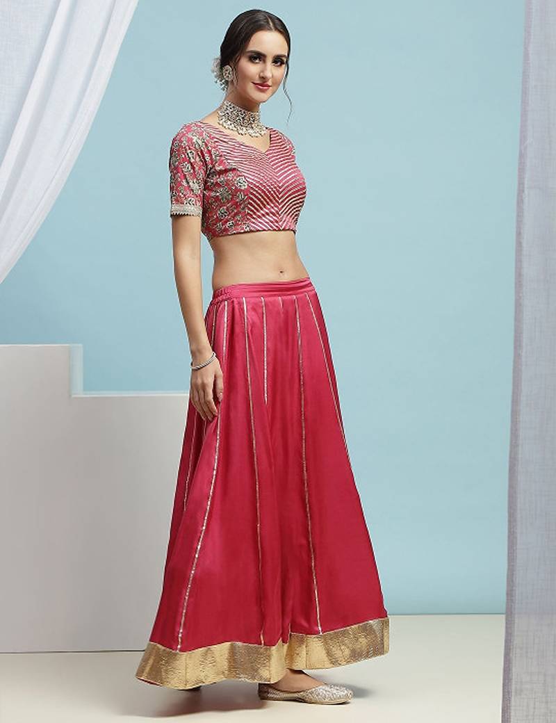 Embroidered v-neck ready to wear lehenga & blouse with dupatta free size upto 42