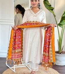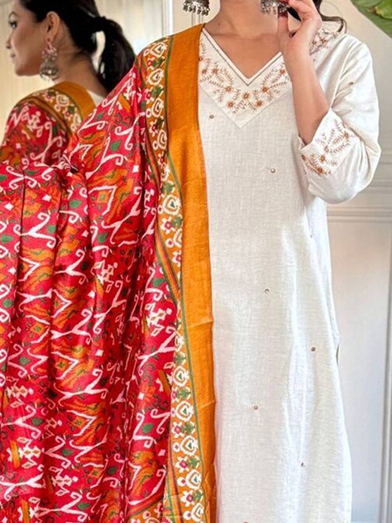 | Product Description | White Embroidered Kurta With Trousers With Dupatta Kurta Design: |