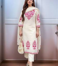 | Product Description | Cream Coloured Embroidered Kurta With Trousers With Dupatta Kurta Design: |