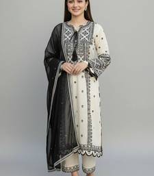 | Product Description | Off White Embroidered Kurta With Trousers With Dupatta Kurta Design: |