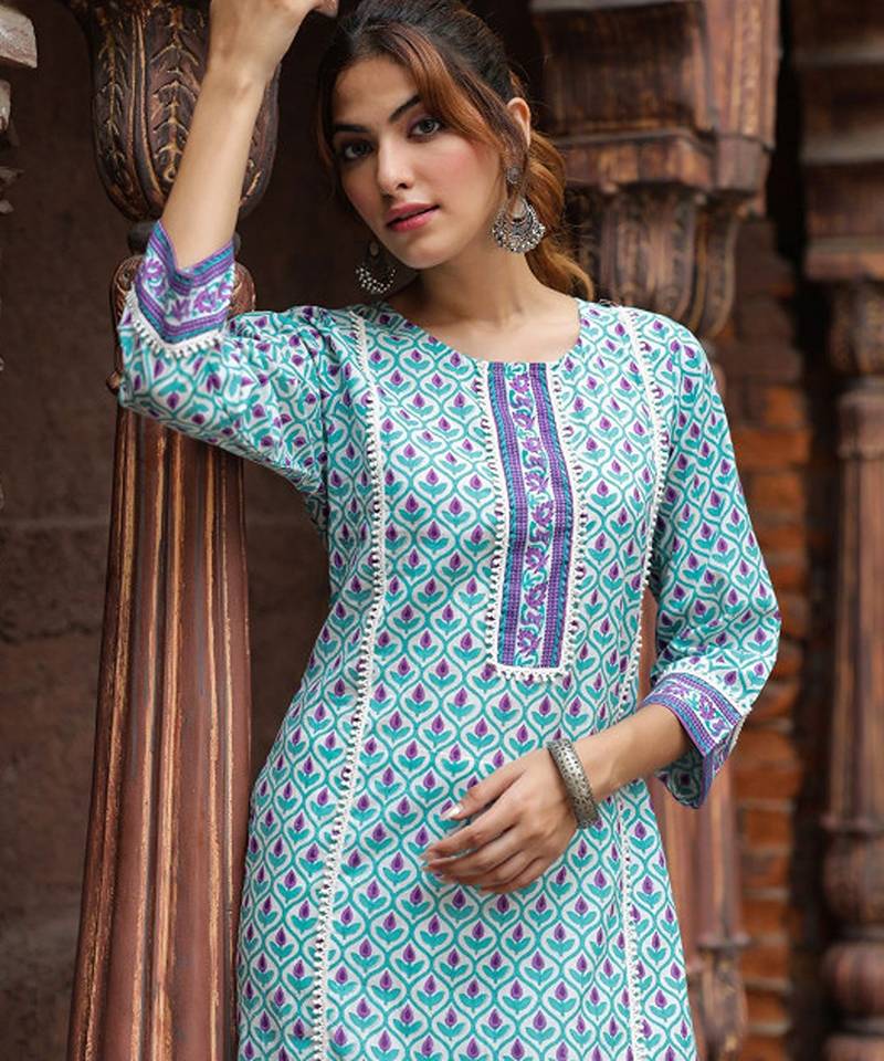 | Product Name | Ethnic Motifs Printed Round Neck Pure Cotton Straight Kurta | |