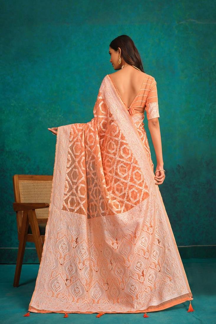 | • | Saree | : | Color- Orange / Fabric- Art Silk |