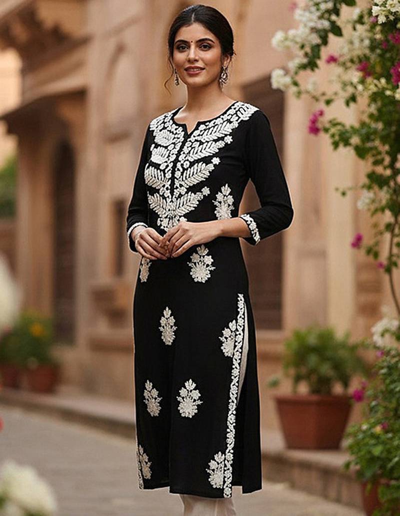 | Product Name | Floral Embroidered Notch Neck Chikankari Straight Kurta | |