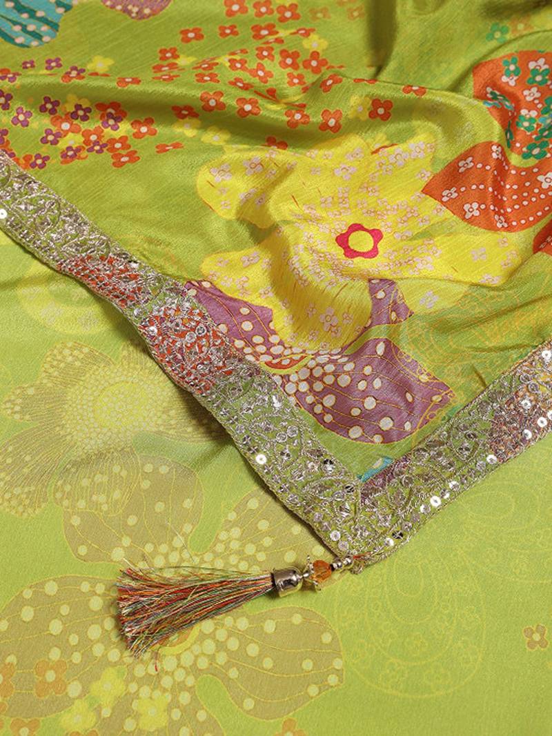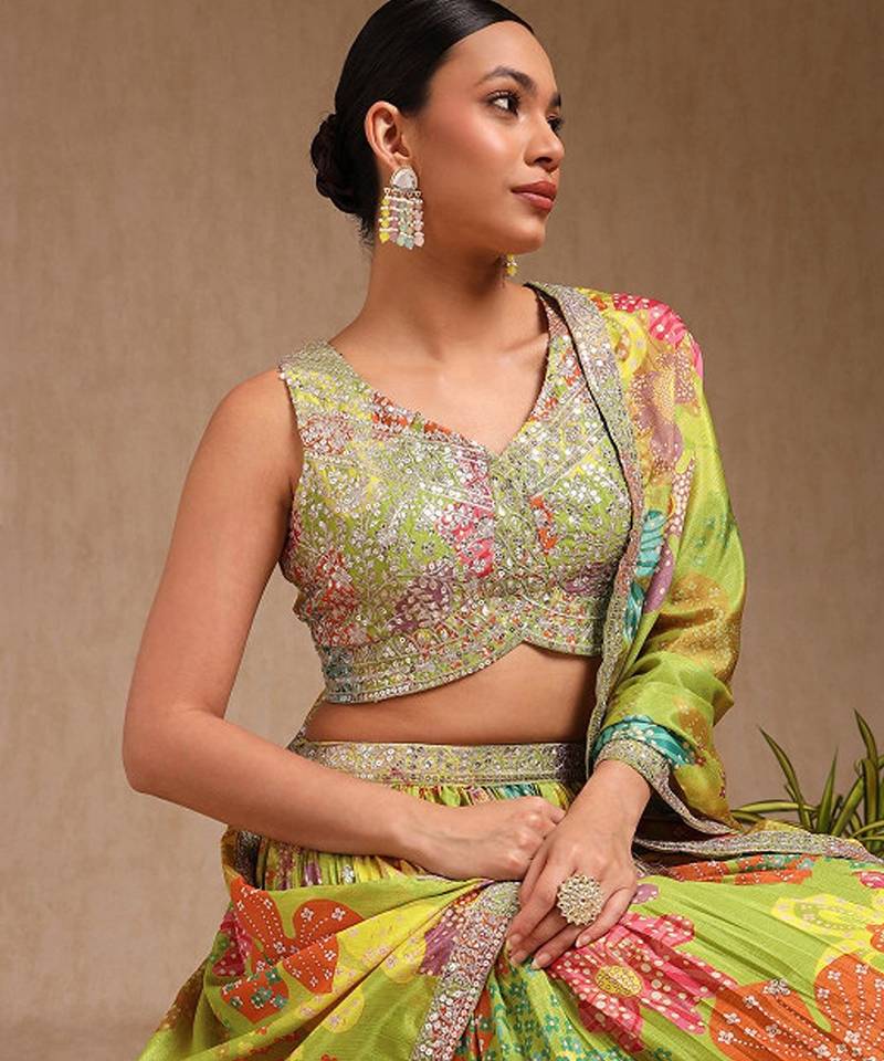 | Product Name | Floral Embroidered Sequinned Ready To Wear Chinon Lehenga & Blouse With Dupatta Free Size Upto 42 | |