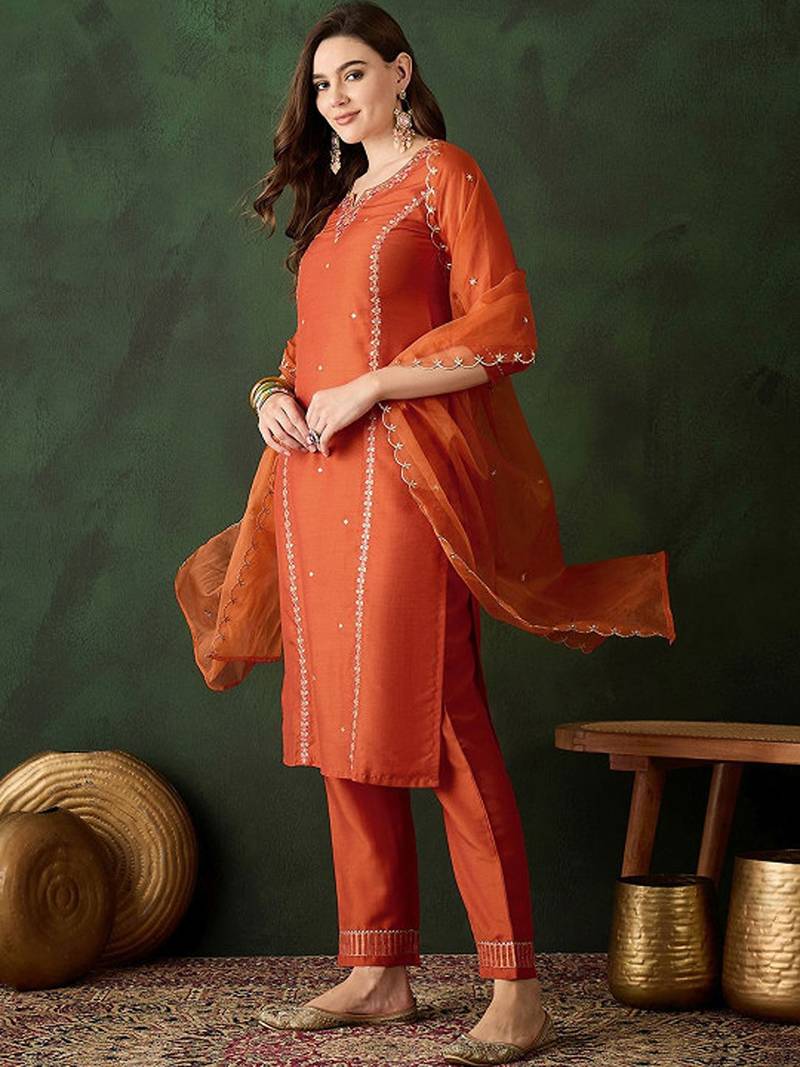 | Product Name | Floral Embroidered Sequinned Straight Kurta & Trouser With Dupatta | |