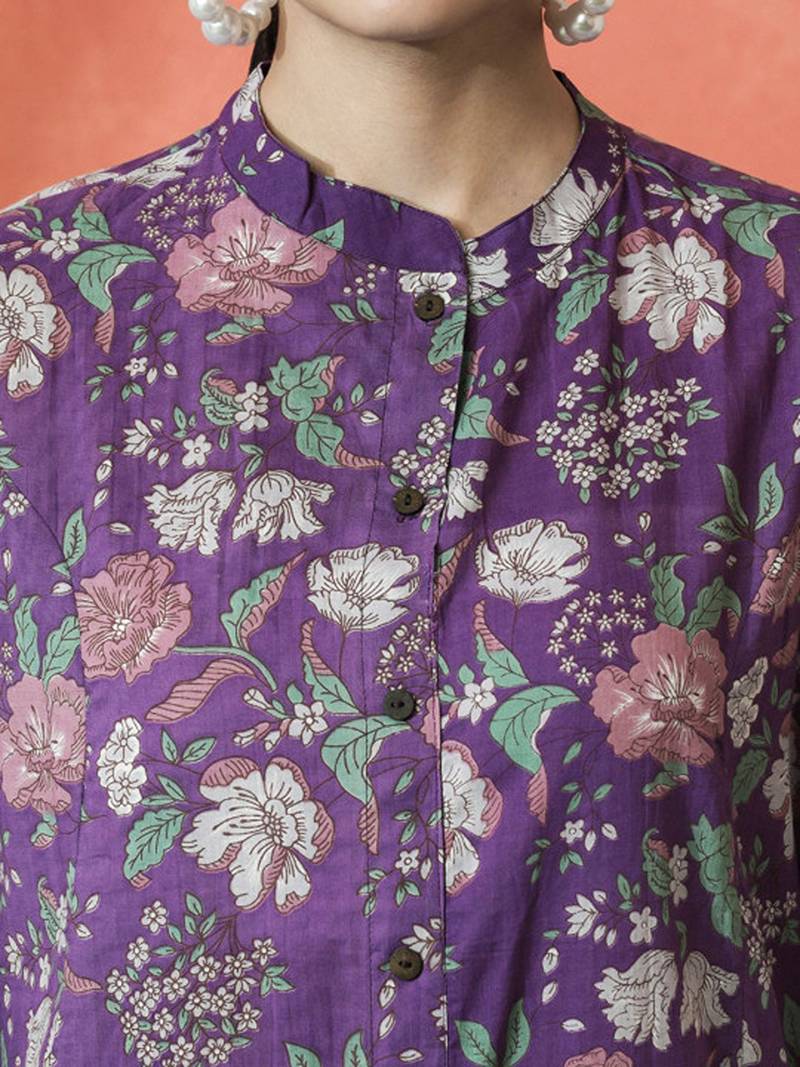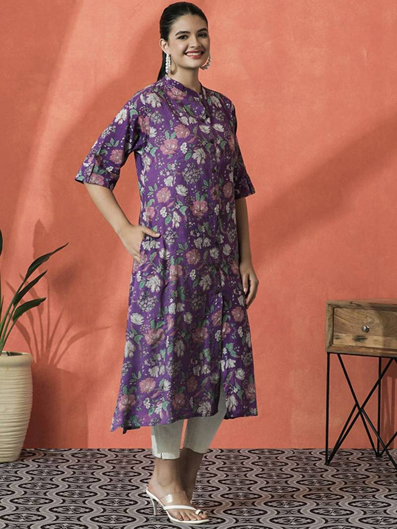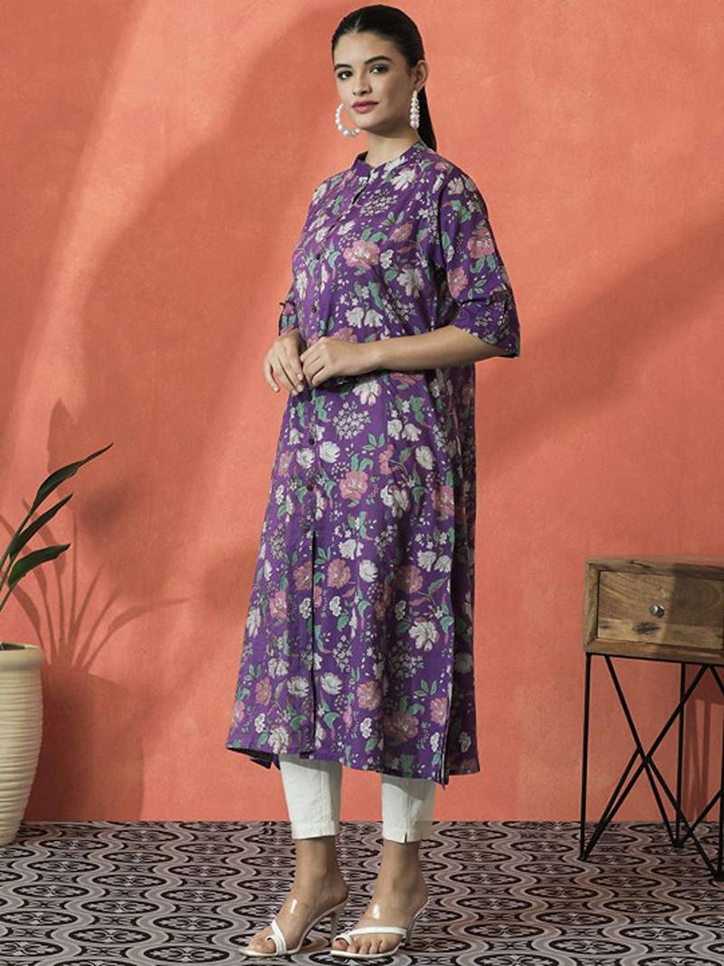 | Product Name | Floral Printed Mandarin Collar Pure Cotton A Line Kurta | |