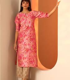 Floral printed notch neck mirror work silk straight kurta