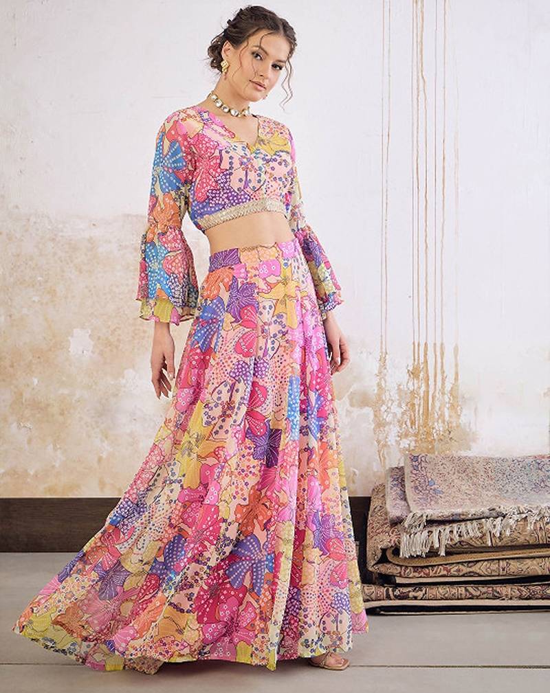 Floral printed ready to wear lehenga & blouse free size upto 42