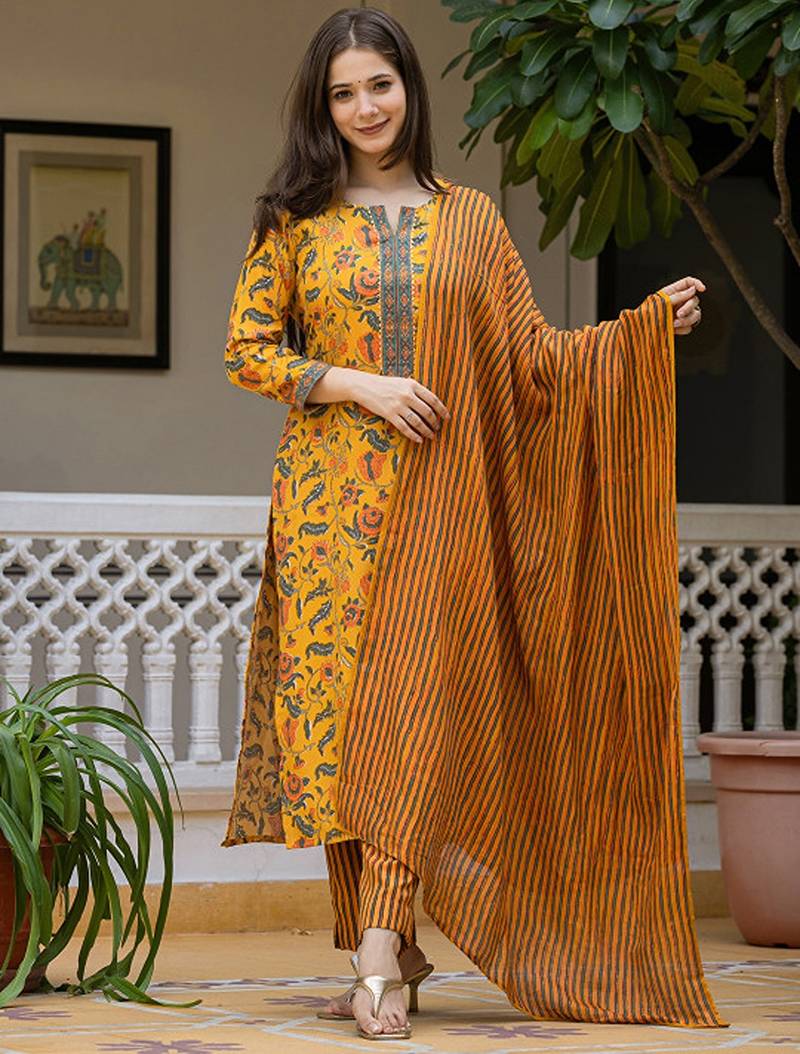 | Product Name | Floral Printed Regular Cotton Blend Kurta With Trousers With Dupatta | |