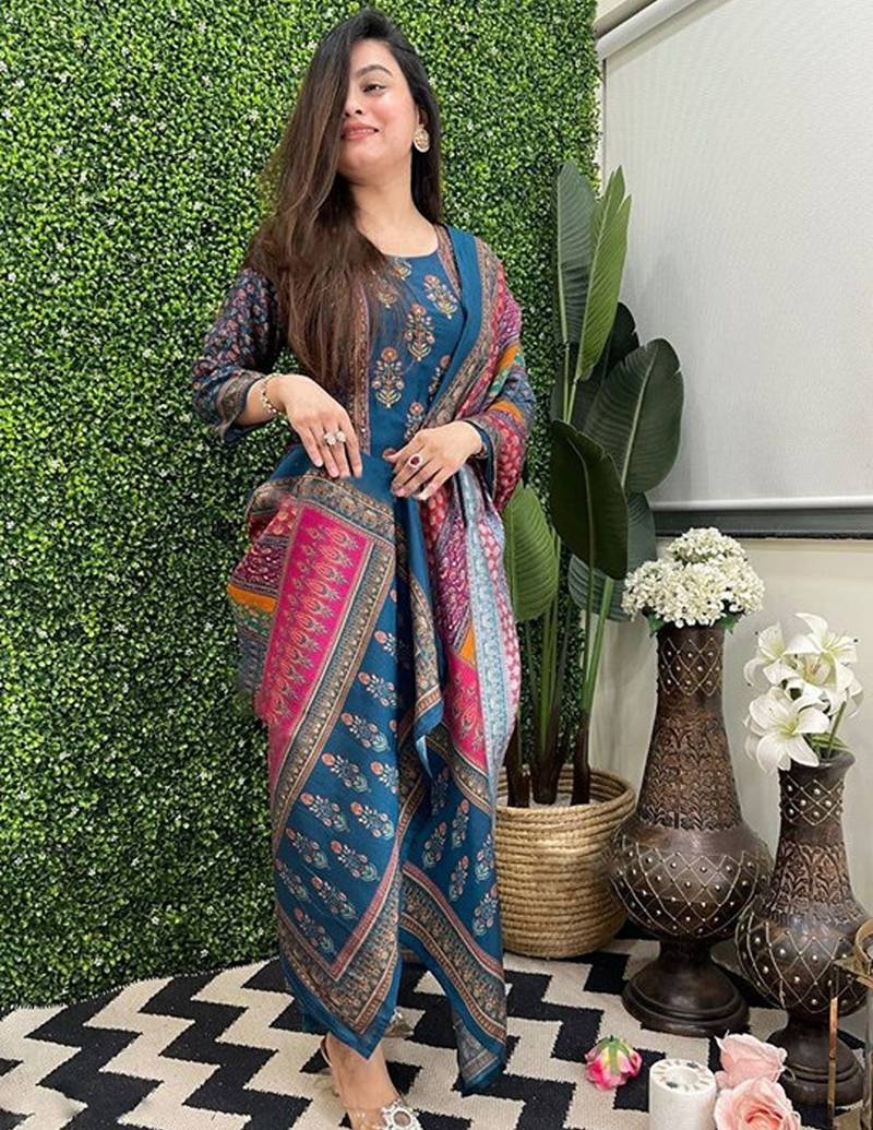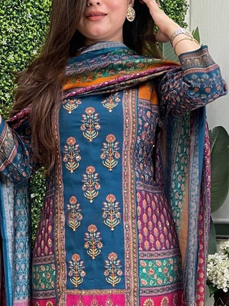 | Product Name | Floral Printed Round Neck Straight Kurta With Trousers & Dupatta | |