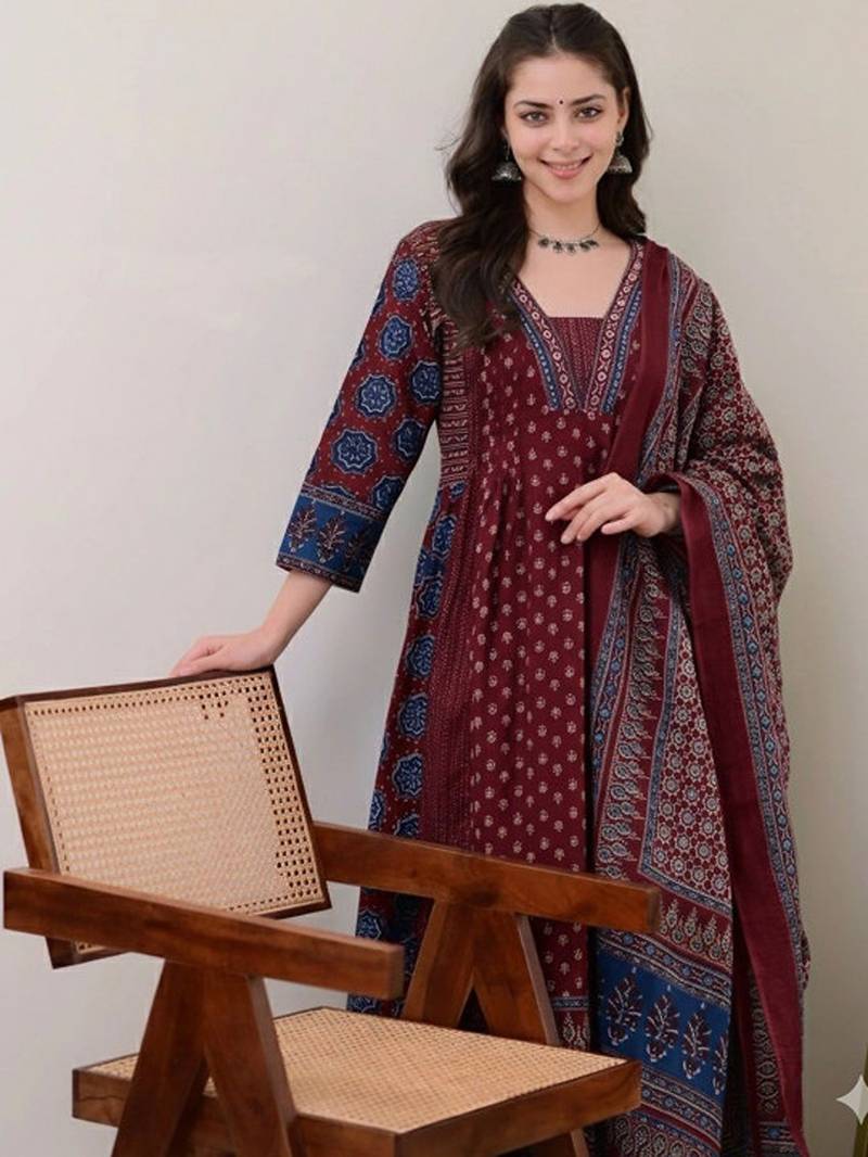 | Product Description | Maroon, White And Blue Printed Kurta With Palazzos And Dupatta Kurta Design: |