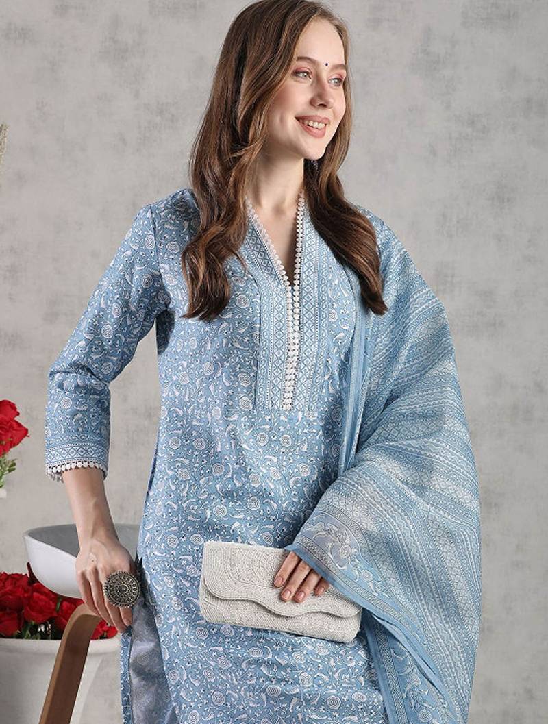 | Product Description | Blue Printed Kurta With Trouser With Dupatta Kurta Design: |