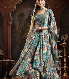 Green floral printed embroidered silk blend lehenga choli dupatta free size upto 42