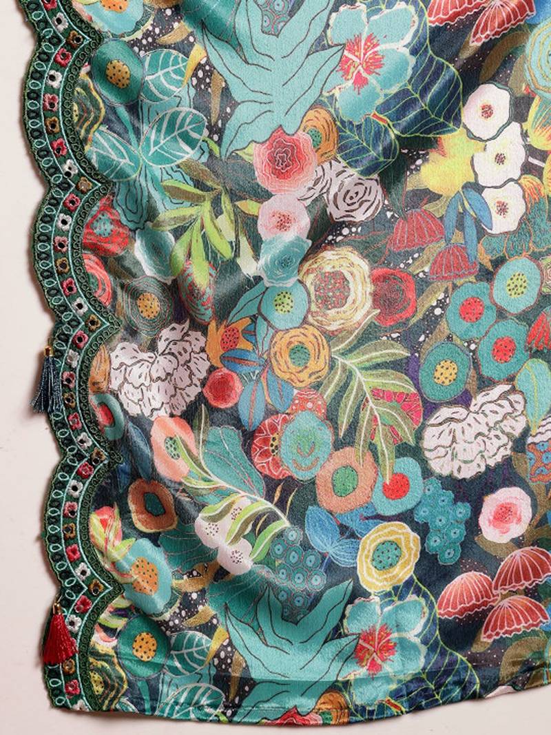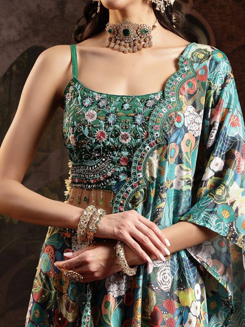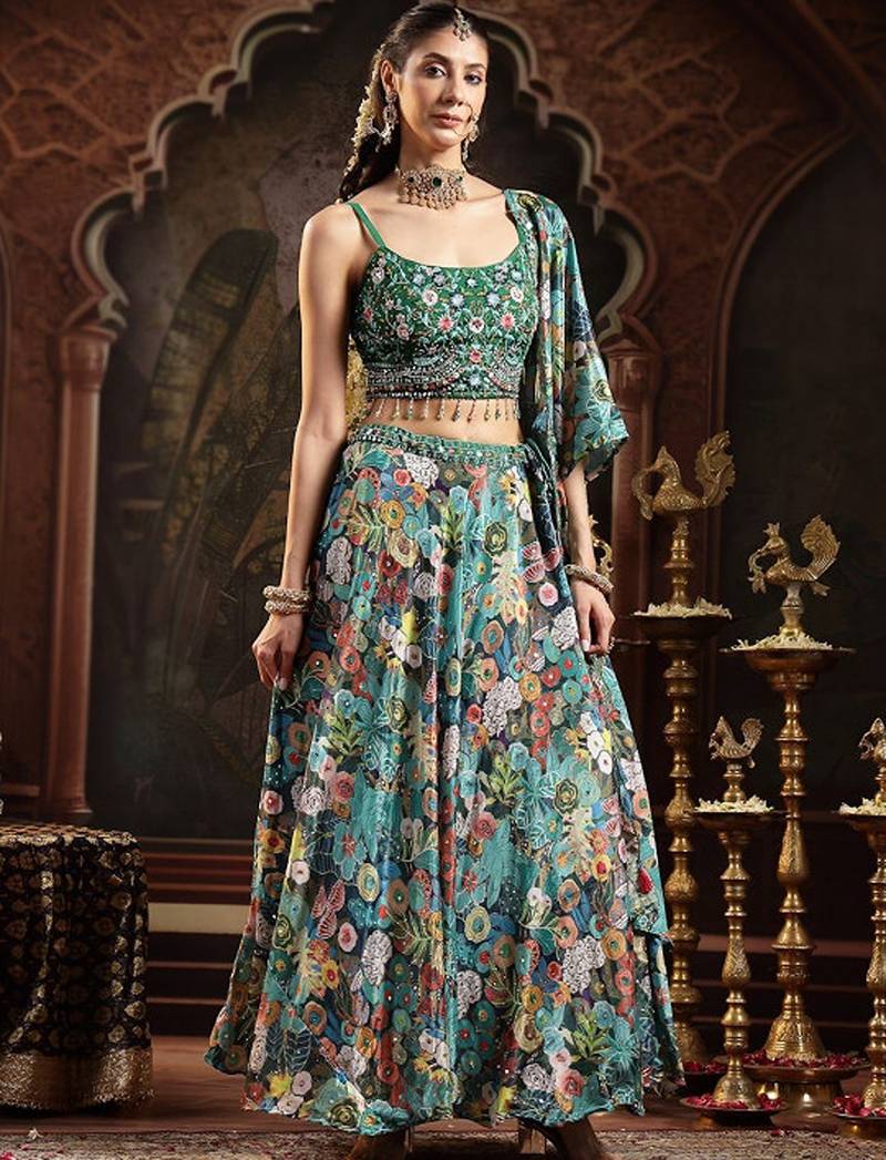 | Product Name | Green Floral Printed Embroidered Silk Blend Lehenga Choli Dupatta Free Size Upto 42 | |