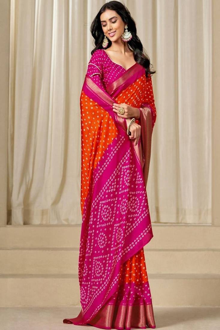 | Product Name | Kalini Women Dola Silk Bandhani Print Zari Border Saree | |
