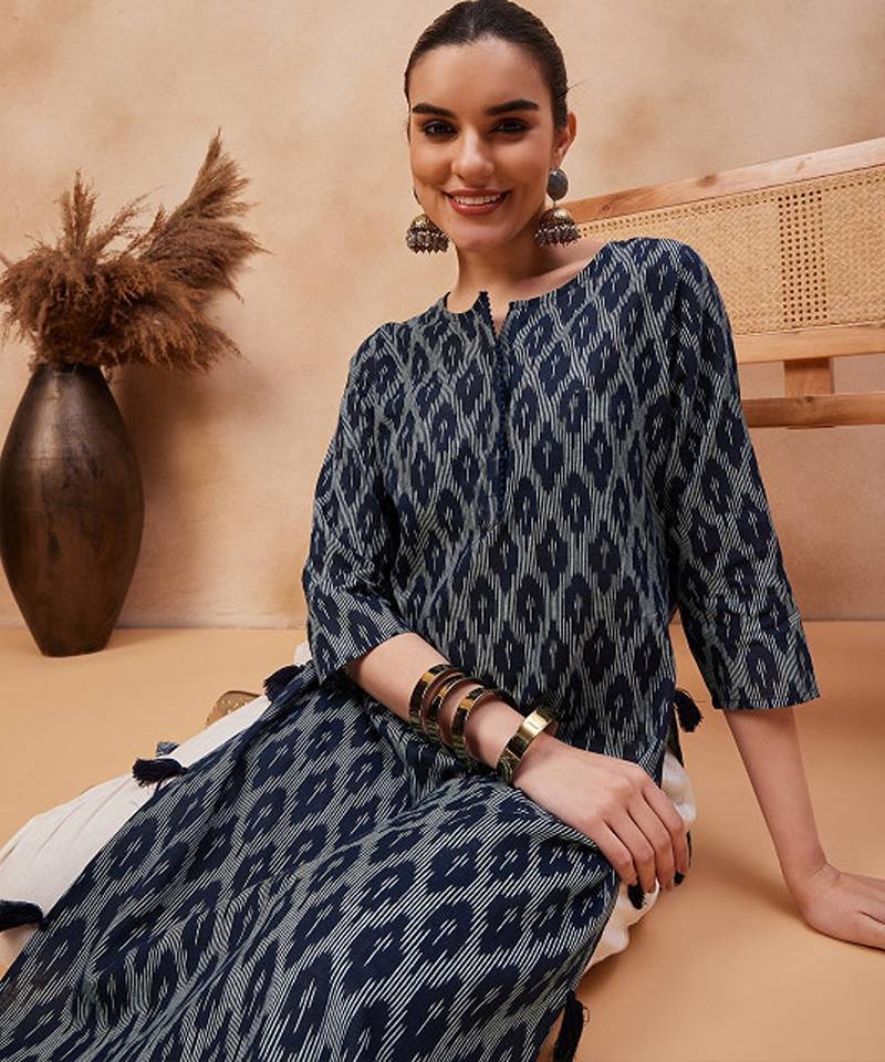 | Product Name | Navy Blue Ethnic Motifs Printed Cotton Straight Kurta | |