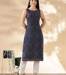 Navy blue geometric printed boat neck straight kurta