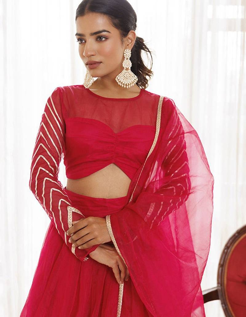 Organza ready to wear lehenga & blouse with dupatta free size upto 42
